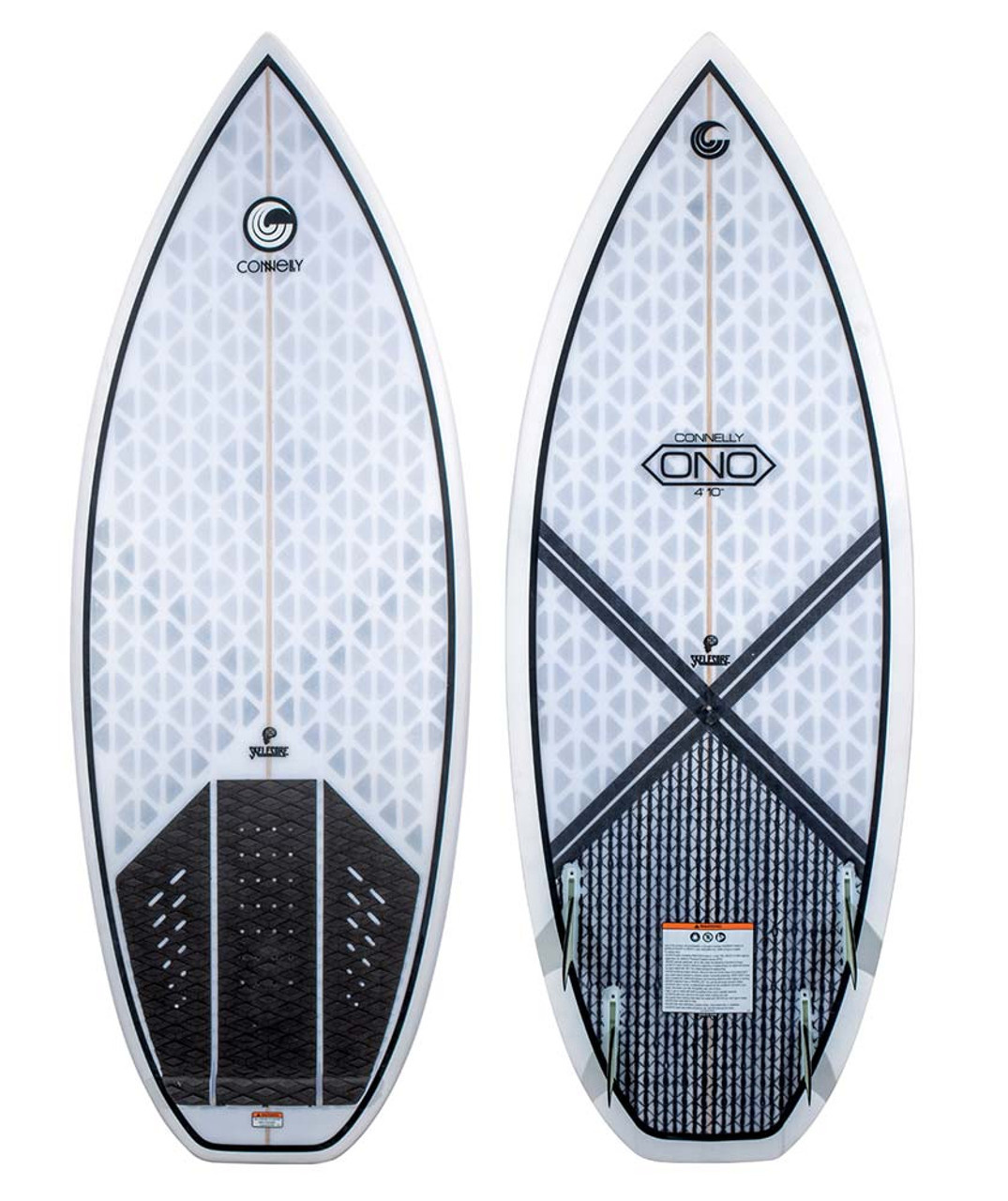 The Connelly Ono Wakesurf Board brings that tried and true ocean surf feel that maximize waves behind the boat. New for 2023 the Ono receives the Skelecore construction with a wooden stringer, bringing more life to an already lively board. The Ono delivers that special feeling one gets ripping fat bottom turns while maintaining enough speed to break the fins into an epic slash on top of the wave. Classical tail shape generates tons of push that allows for full use of wave from back to front. The Quad fin set up allows for a customized ride from a twin fin setup for maximum edge hold and looseness, to a full quad layout for a rider looking for something a little faster. An action packed board, the Connelly Ono Wakesurf board is for advanced level riders looking for a fast lively board, while also being forgiving for those looking to advance their skills to the next level.