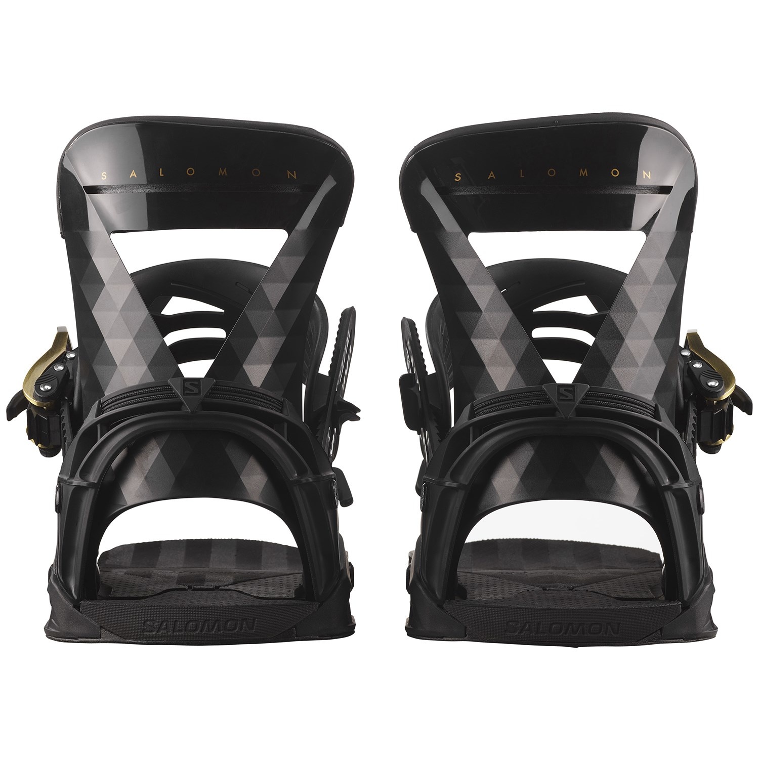 The 2023 Salomon Mirage Womens Snowboard Bindings bring the supreme heel hold and natural flexion of Salomon's signature ShadowFit Baseplate to a softer, freestyle-friendly package. The smooth-flexing Mirage utilizes asymmetrical highbacks and ankle straps to maintain control and board feel, while adding supreme ease of handling. Perfect for mellow groomer cruising, anytime resort hotlapping, or all-out park ripping.