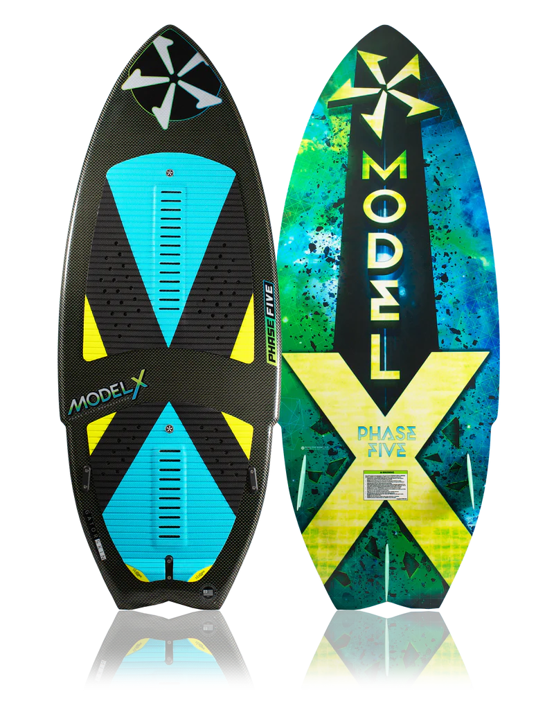 For over a decade the Phase 5 Model X Wakesurf Board has delivered unwavered performance and dependability for a wide range of riders. The Phase Five Model X Wakesurfer is easy to ride while delivering high end performance. Its full outline with a gradual entry rocker flows nicely into the Model X’s unique single wing swallow tail. These design features make the Model X very stable, fast and maneuverable. The versatile Model X is ready to cruise in the pocket or cut loose above the lip, making it a solid choice for most riders.