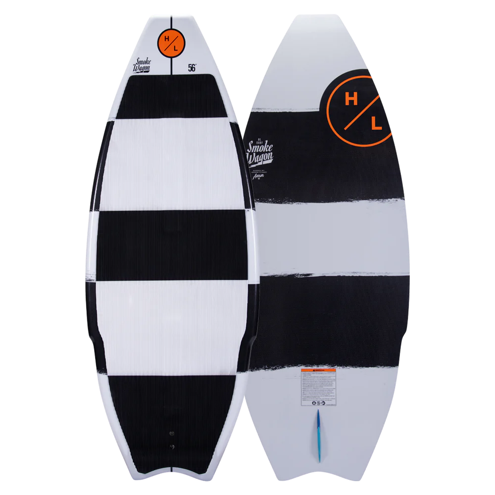 The Smokewagon, Hyperlite’s new high end skim style surfer geared for larger surfers in the wakes of today. Sized at 56” & 58” the Smokewagon provides maximum volume and the wide winged swallow tail design adds push to keep up with wakes of all sizes. This skimmer has great speed down the line thanks to the minimal rocker height and the lightweight Carbon Construction with Nova Core makes the Smokewagon super maneuverable. Machined EVA Traction maintains a tight grip for solid edge control. Outfitted with the Solo Skim Fin, riders can hold a fast line while engaged and break it free when it’s time to spin and stick shuvits.