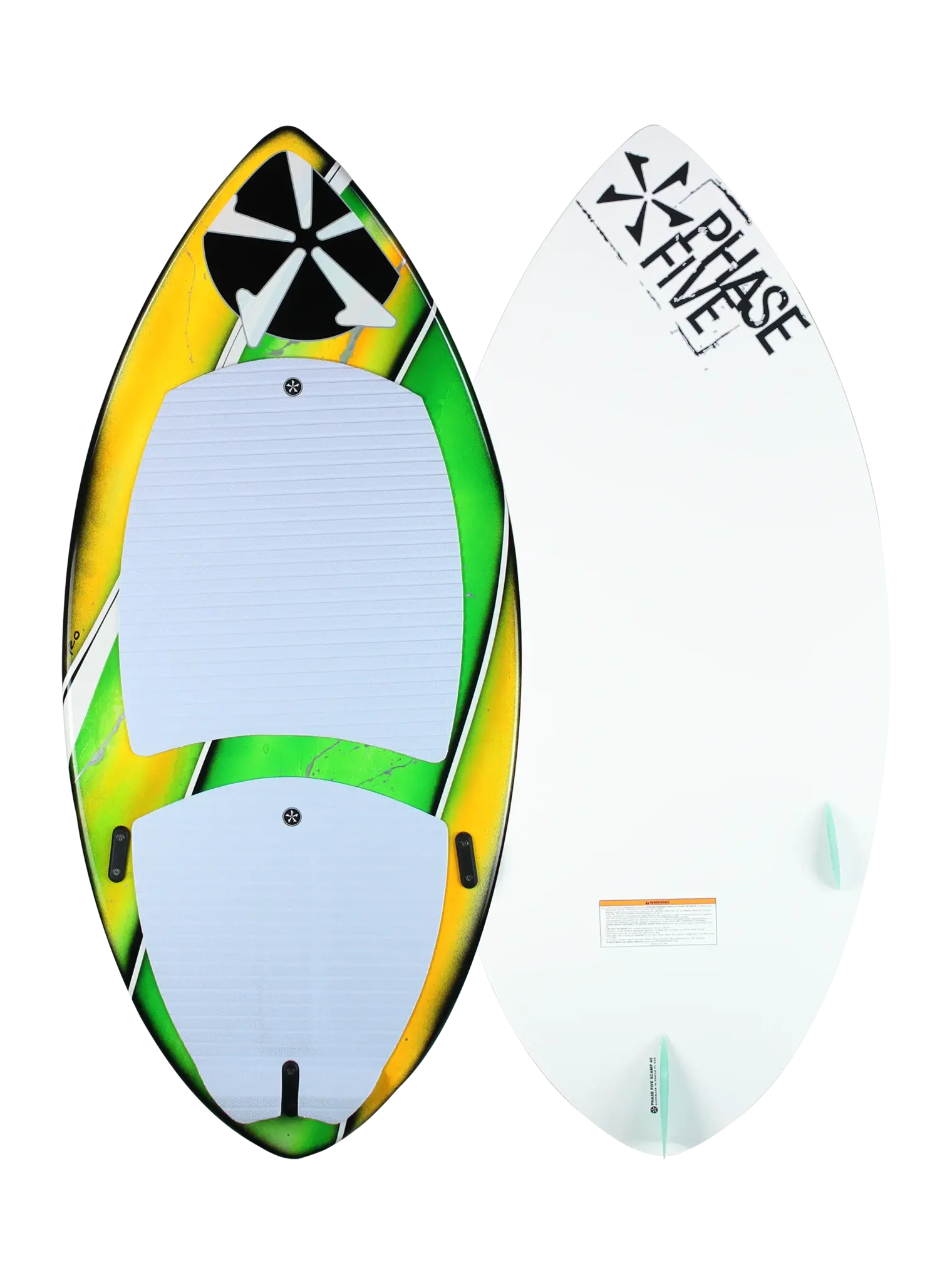 • The kids Phase Five Scamp Wakesurfer uses a wide stable profile that carries the right amount of momentum to stay in the wave. The thin ½” skim style core provides exceptional float and maintains excellent rail sensitivity for the lighter rider.