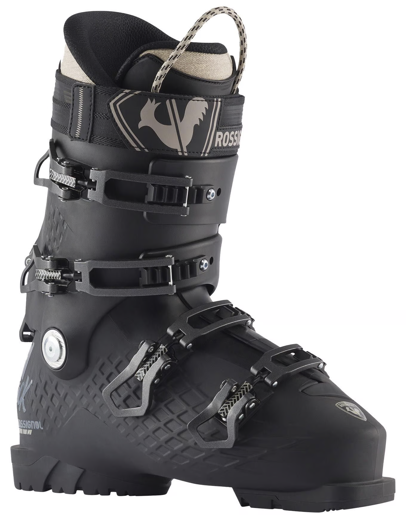 The Rossignol Alltrack Pro 100 MV Ski Boots were designed to ski the whole mountain from inbounds powder laps to exploring the back bowls this ski boot does it all. A releasable cuff offers a natural range of motion for hiking and a 100mm last balances comfort and control. The Generative Design Grid shell is engineered for reduced weight and full power transmission in all-conditions and terrain. The full custom liner is thermo-moldable for a precise fit.