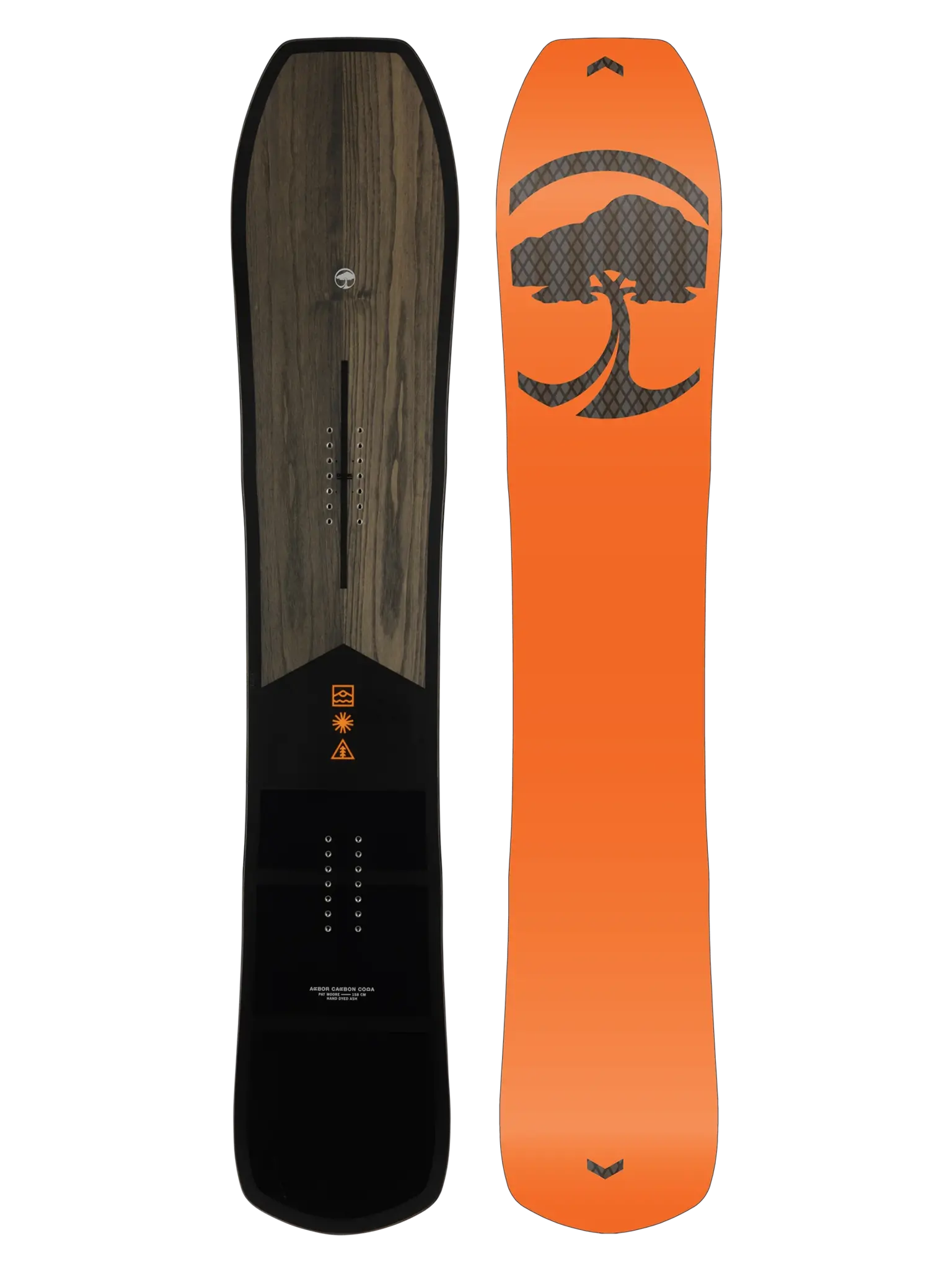 • The Coda is Arbor’s premier all-mountain, cross-terrain and performance-ready franchise. Available in an upgraded Carbon offering for next-level snap and response, the Coda’s powerful directional camber profile is supported by Grip Tech Contact Points.
