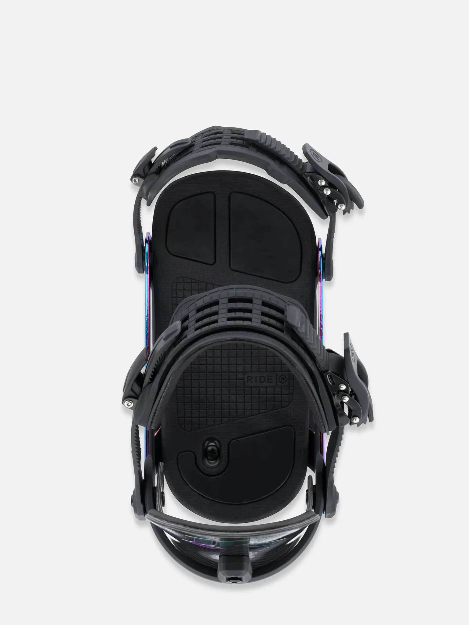 The A-10 packs all of Ride's proprietary technology into the most advanced binding in the world. This is our high-performance model designed for the most demanding snowboarders. The A-Series Aluminum Chassis provides the reactive flex and power transfer of aluminum with less rigidity than previous designs. The two-piece design allows for toe heel centering and a perfect fit for every boot size. The Carbon Slimeback™ Highback provides the response of carbon fiber with the damping of urethane for unmatched performance. The Three-Piece Ankle Strap combines foam and two different density plastics for comfort, durability, and performance. The canted footbed aligns your joints with a 2.5 degree angle while providing more leverage over the tip and tail of your board while the TPU basepad softens high-speed vibrations. The A-10 is designed for high-end performance and a very precise ride.