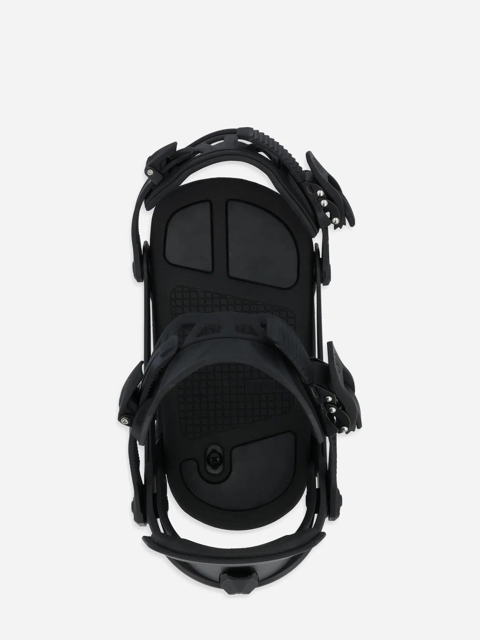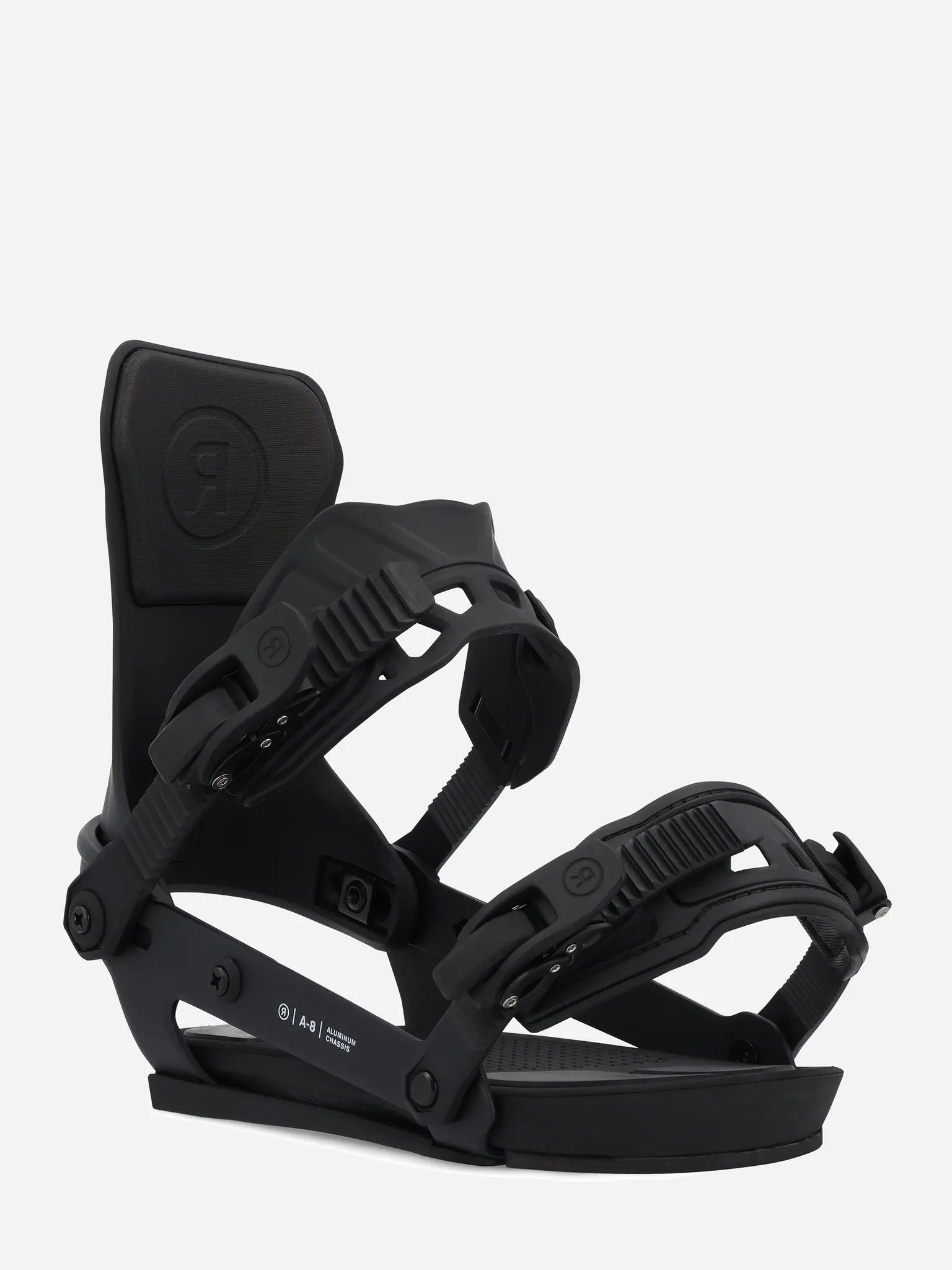 The A-8 is designed for all-mountain performance. This binding is precise and aggressive for the snowboarder that demands the most from their bindings. The Reversible Ankle Strap provides two riding positions. Ride with the stiff part of the strap on the top for a more aggressive feel or swap the straps so the soft part is on top for more flexibility and lateral movement. The A-Series aluminum chassis provides the reactive flex and power transfer of aluminum with less rigidity than previous designs. The canted footbed aligns your joints with a 2.5 degree angle while providing more leverage over the tip and tail of your board. Integrated rubber PODS make for an even smoother ride and the TPU basepad damps out high-speed vibrations. The A-8 is designed for an advanced rider looking for all-mountain performance.