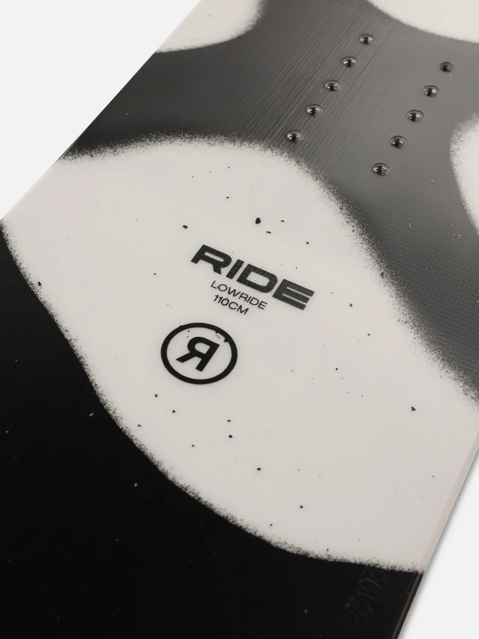 Zero Camber provides a stable platform for young riders to progress while a Quadratic Sidecut improves turn initiation, exit and overall edge grip. Board flex is optimized for small children allowing for easy turn initiation. The Lowride is a kid’s board for riders focused on progression and durability.
