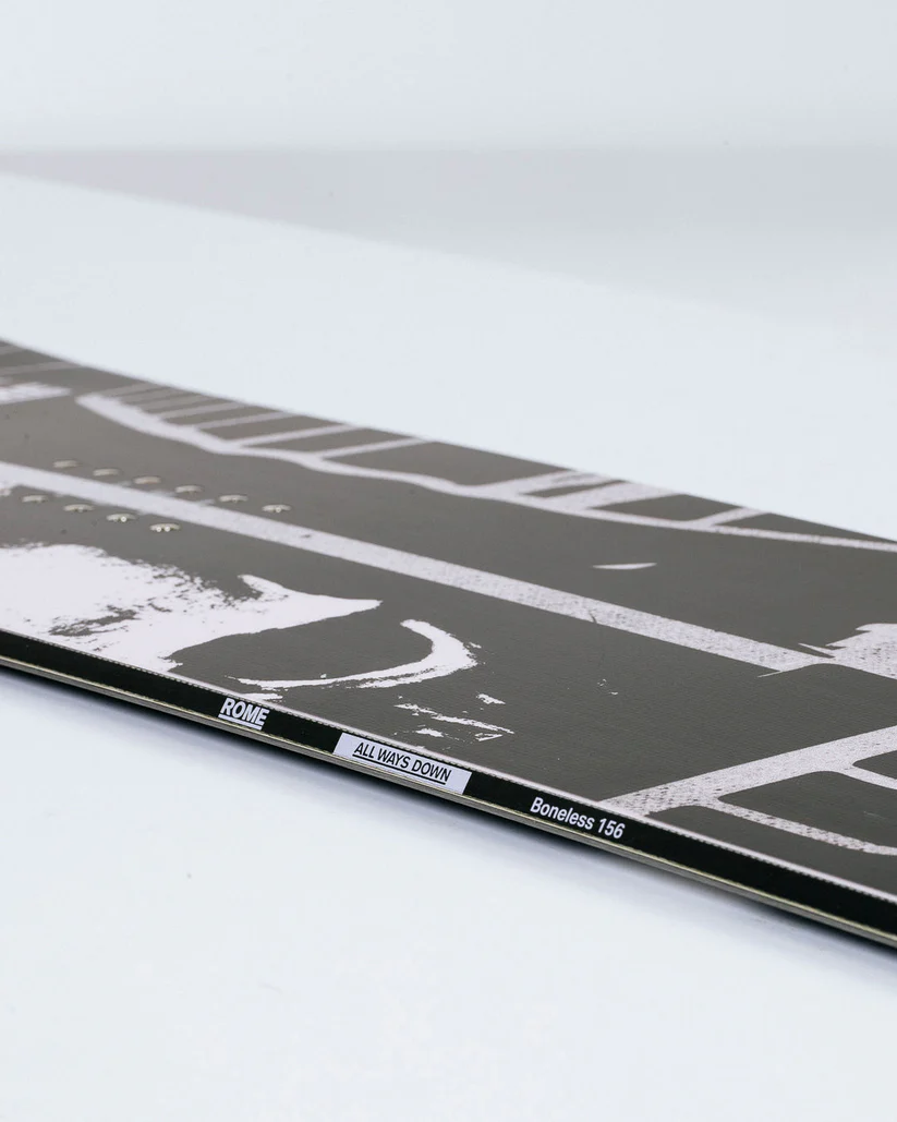The Boneless is a new take on freestyle-flexing, all-mountain versatility. With a medium-to-playful flex profile and Twin Diamond 3D to handle any conditions, the Boneless is equally at home lapping the park or getting weird in the trees.