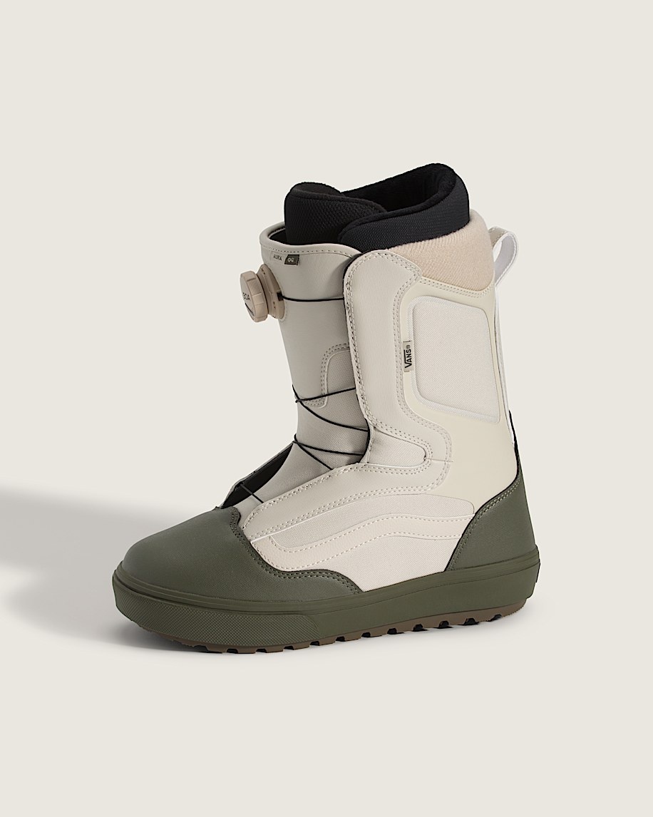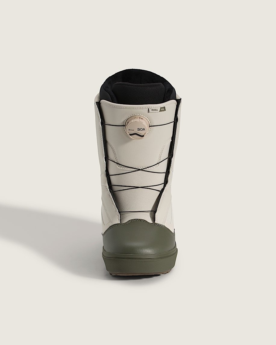 The Aura OG is a lightweight and responsive snowboard boot ready for all riders in all terrain. Optimized for versatility from parks to powder and everything in between the speed and simplicity of its single-dial BOA Fit System makes precise, on-the-fly adjustability easy no matter where you go, while the V1 Waffle Lug outsole and classic Sidestripe add original and unmistakable Vans style. It is normal for V-Series liners to fit snug right out of the box. After several hours of use, the dual-density, heat-moldable core of the liner will begin to shape to your foot, creating unparalleled comfort and a uniquely perfect fit. We recommend that you purchase your regular size.