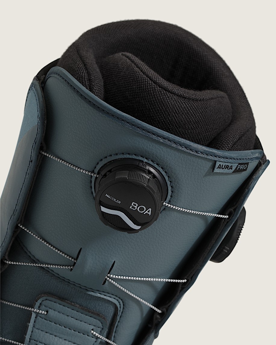 Featuring comfort, control, and style that only Vans can offer, the Aura Pro delivers on its versatile, hardworking reputation as the boot built to perform in all conditions. A dual-zone BOA® Fit System featuring Vans Custom Focus provides unlimited on-the-fly micro-adjustability backed by the customizable comfort and heel hold of the Custom Slide Guide. Add in a thermoregulating liner and high traction outsole for the sidecountry, and the Aura Pro exceeds expectations for comfort and performance.