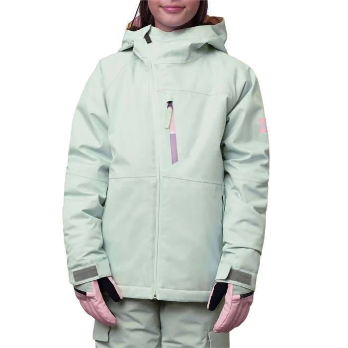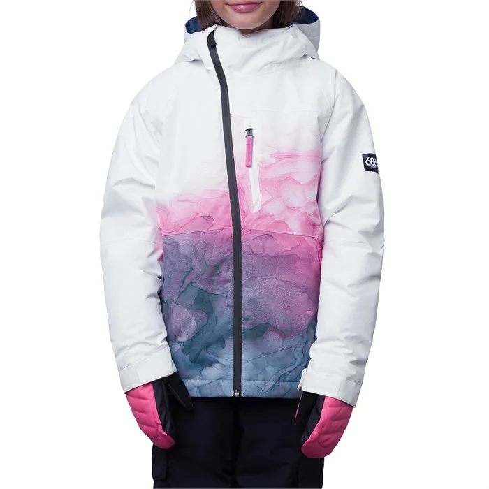 Make sure they're ready for any weather with the 686 Girls Hydra Insulated Jacket. infiLOFT® body mapped insulation is toasty without getting in the way and the infiDRY® membrane will block water and snow all day long. An adjustable powder skirt, helmet-compatible hood, and multiple pockets round off this stylish and functional jacket, and as a bonus you can extend the sleeves for an extra season of use.