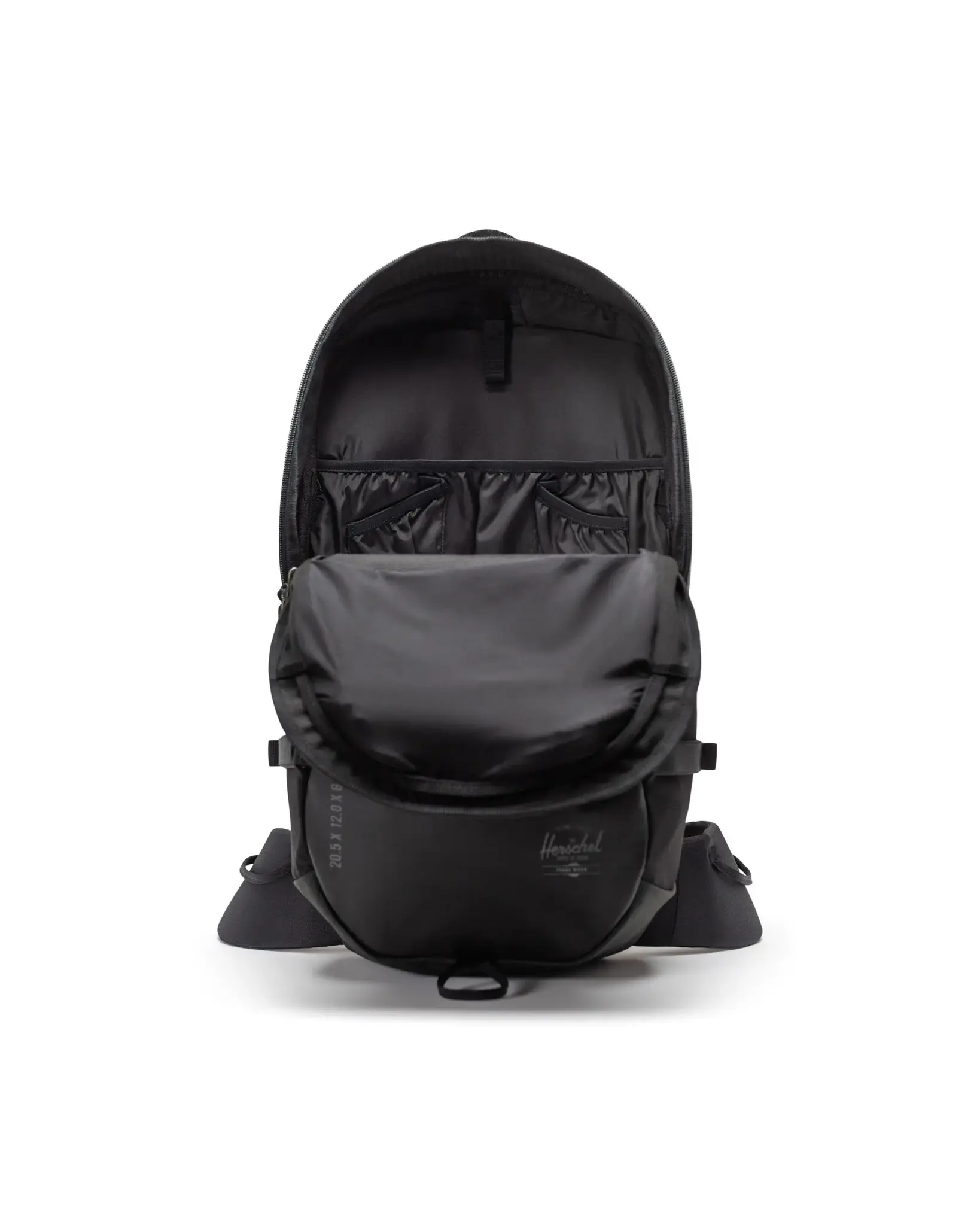 • Introducing Herschel Outdoor Equipment™— our performance line. Engineered with custom All Season fabric and an intuitive design, this backpack offers a built-in hydration system, a removable waist strap and sternum strap with a rescue whistle.