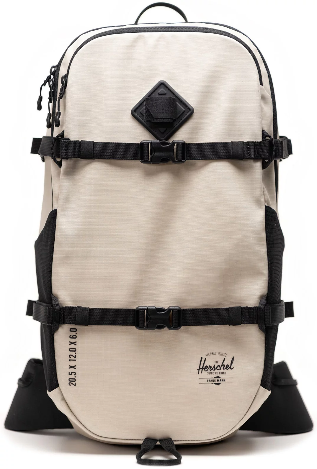 • Introducing Herschel Outdoor Equipment™— our performance line. Engineered with custom All Season fabric and an intuitive design, this backpack offers a built-in hydration system, a removable waist strap and sternum strap with a rescue whistle.