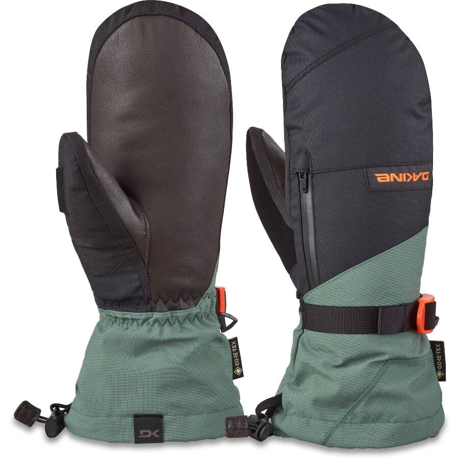 Frontside carving or backside exploring, the Dakine Leather Titan Mitt offers all-conditions utility. A waterproof-breathable GORE-TEX insert with Gore Warm technology—an optimized construction system of inner lining, membrane and outer material—efficiently fends off moisture, while added high-loft insulation lends comfort through deep winter days. Durable leather palms manage buckles and poles with reliable dexterity, and a small stash pocket secures spending money or a heat pack when it's extra frigid. Removable liner gloves extend the comfort range well into the frigid side of the spectrum when inserted and deep into spring without. Touchscreen compatibility on the liner means you don't need to choose between frostbite and blowing your friends off.