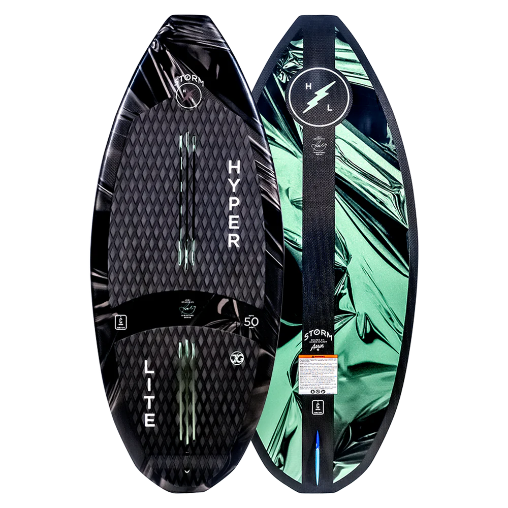 Building a shape that could keep up with world champion wakesurfer Jodi Grassman was the challenge, her new pro model skim shape is the resolution, introducing the Storm. Jodi’s aggressive riding style demanded a board that would carry speed and generate lift off the wave for her deep bag of tricks. The Storm features a wider tail to help generate the needed speed while the blunt tip/tail profile provide a manoeuvrable ride that tracks exceptionally well riding switch. Hyperlite’s woven carbon and Nova core construction yield a responsive and snappy feel meeting the standards of Jodi Grassman.
