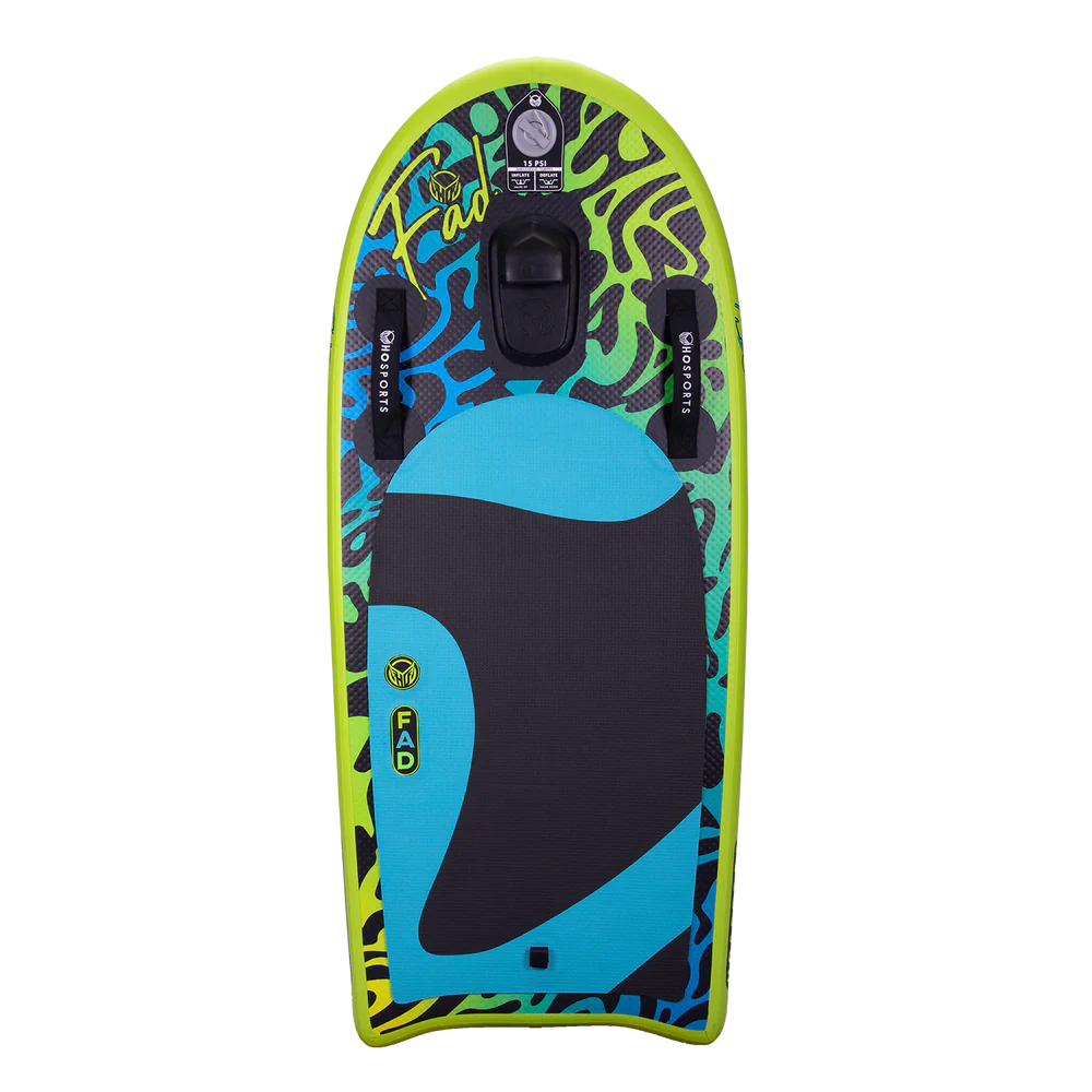 Easy to inflate & deflate with a surf inspired shape, the FAD boards are built with a durable drop-stitch construction making them rigid when inflated and super compact for storage when deflated. Their Machined EVA Traction Pads makes them grippy for wakesurfing and wakeriding while the soft EVA handle hook and dual handles permit easy getups and hands free riding. You can kneel, lay, stand or sit on the multi-functional FAD boards. Endless riding possibilities await, unlocking a realm of pure imagination for you, your friends, and family. Suitable for all ages, the FADs are sure to capture attention on your lake this summer, bringing joy and excitement to everyone!