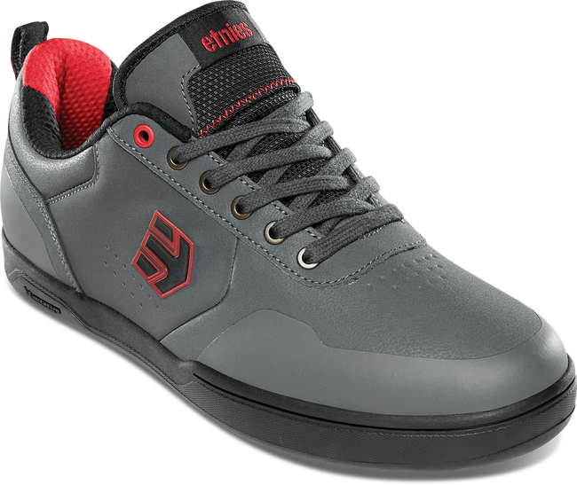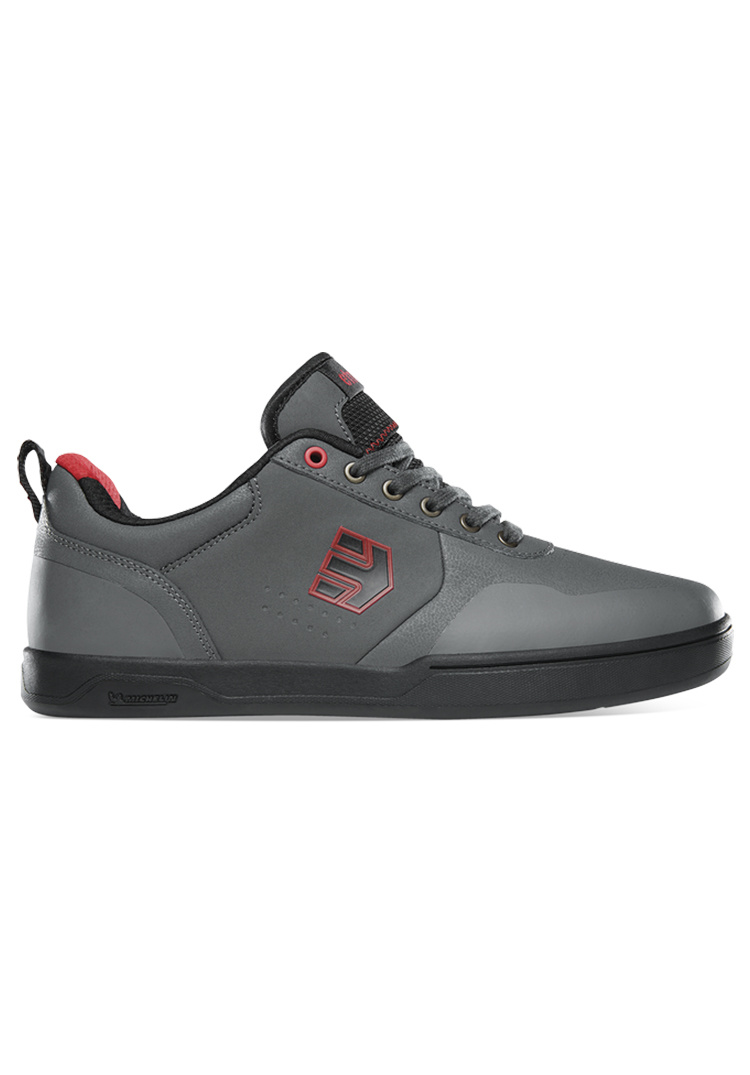 The Etnies Culvert Shoe is a new enduro/downhill shoe ready to get shreddy! It has sticky Michelin compound that provides excellent pedal and surface grip. It has a force shield reinforced upper with a hot-melted toe and heel cap. This shoe is repel treated that blocks moisture with 3M thinsulate lining. Tongue gussets shield moisture, dirt, and pebbles. Includes a lace pocket on top of the tongue with TPU molded Pedal Shank 2 in the midsole. Also has Nylon pull loop on heel.