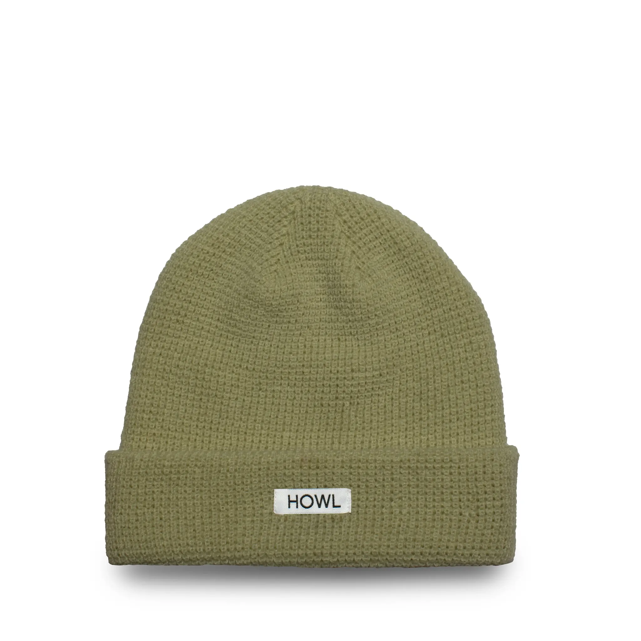 • The Howl Waffle Beanie is a light, acrylic cuff fold beanie in waffle knit with a sewn HOWL woven label. Click below to shop now