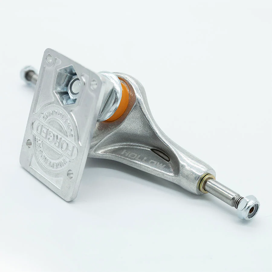 The Independent Forged Hollow Mid Skateboard Trucks feature a lower profile hanger for optimal contact point angle on your nose and tail for flip tricks, ledges, and all-around street skating with a recommended wheel size of 52mm and under.The newly designed and first ever Independent inverted kingpin can be used with either a 5.5mm Allen key or standard 9/16" hex wrench. The innovative new Shaft Nut in the baseplate creates a rigid and durable solution to lateral movement found in most inverted kingpin designs and increases adjustability.The new MiD Forged Hollow is 50.5mm tall and built on Independent's legendary geometry with full size cushions for maximum turning action and comes in 129, 139, 144, 149, 159 sizes.