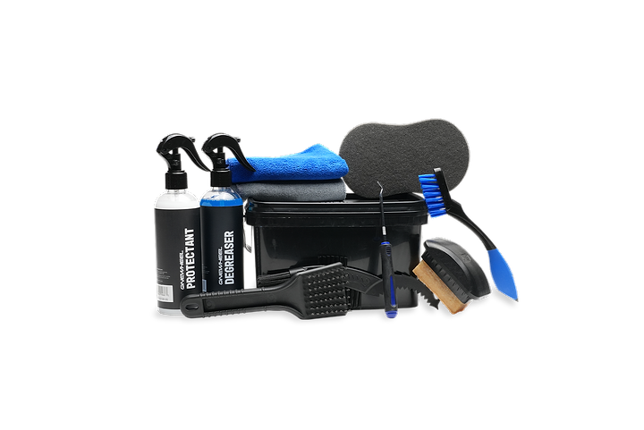 1x Griptape Brush1x Griptape Eraser1x Sponge2x Microfiber Cloths1x Nylon Brush1x Sprocket Cleaner (clears fender debris)1x Pick (cleans screw heads and tight places)1x Degreaser Spray1x Protectant Spray1x Tub (dual-purpose for carrying supplies and holding water)