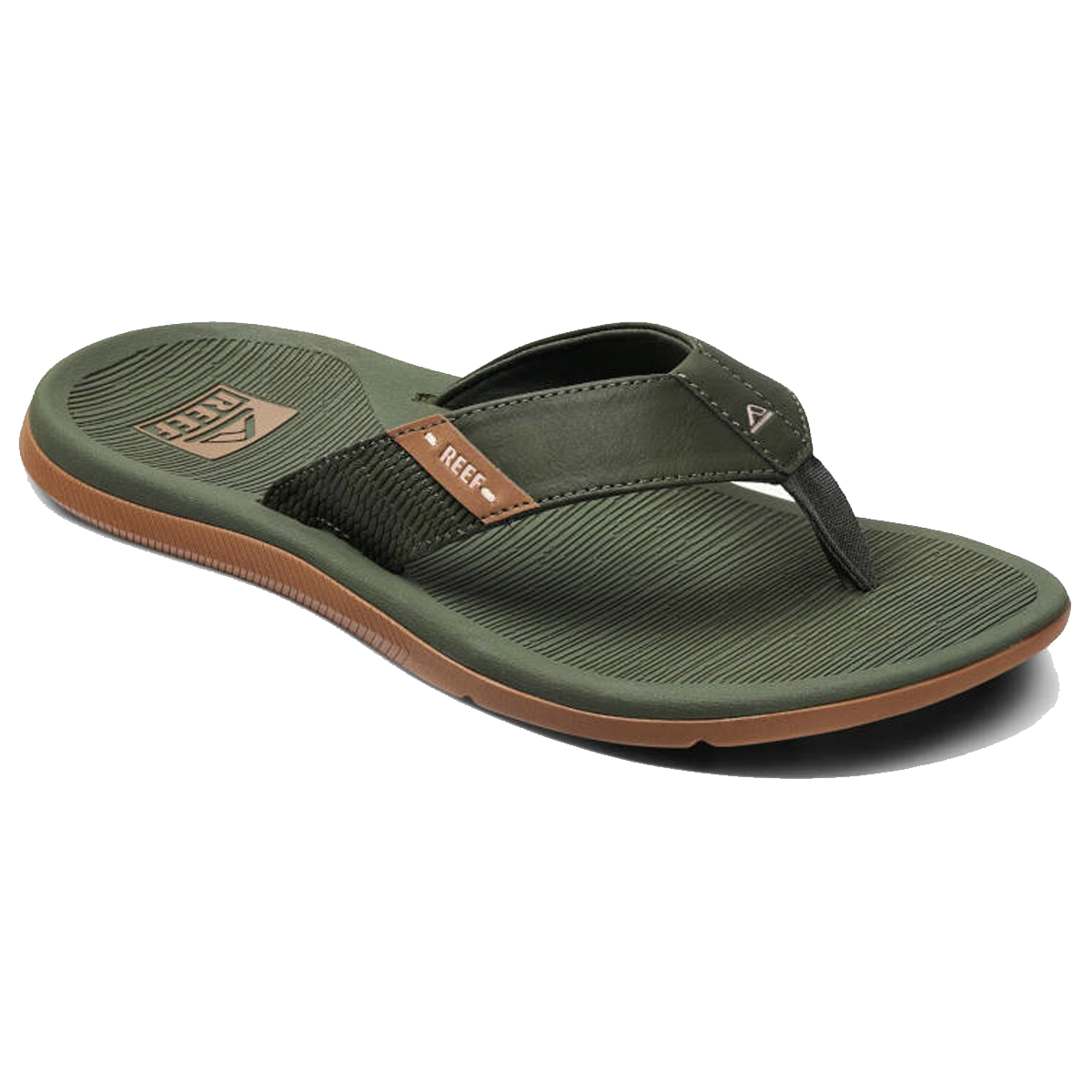 A favorite REEF sandal, the Reef Santa Ana Sandal makes you feel good just saying its name. And it looks even better - not the palm frond-inspired side wall. Right? But most of all, slip into it and feel the cushiony softness with high arch support, a padded vegan leather strap, and bamboo-inspired texture under foot for a no-slip grip. You get all the feels with this water-friendly Santa Ana.
