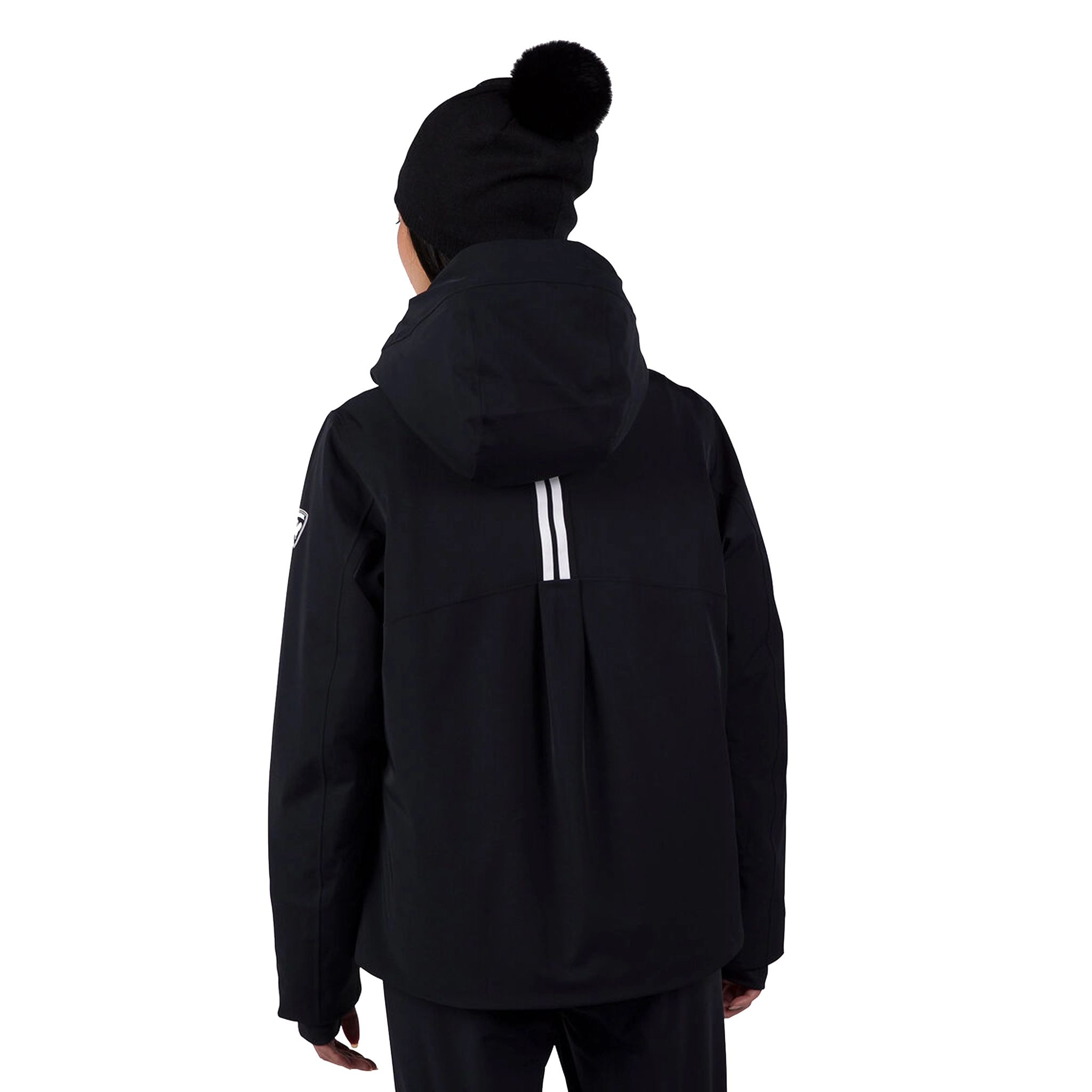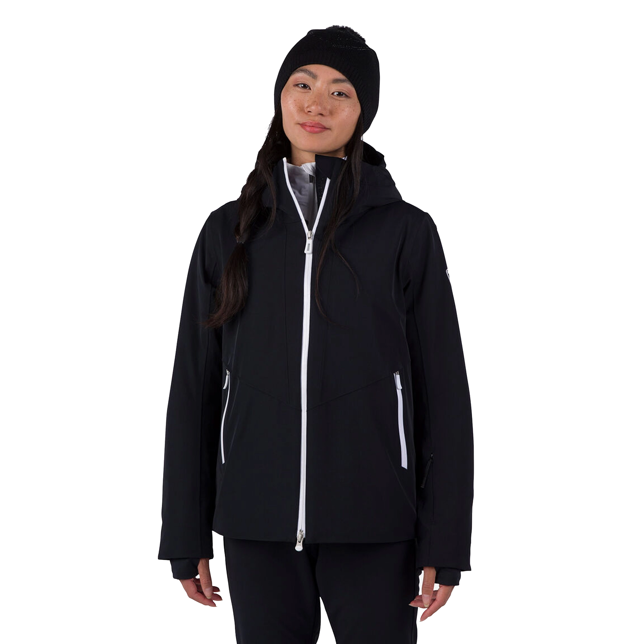 The Rossignol Women's Black Side Ski Jacket features light performance storm coverage with an elevated fit and feel. The Blackside Ski Jacket combines the easy-moving feel of four-way stretch with the latest waterproof, breathable technology to match fast-paced days on the mountain. Low-profile synthetic insulation turns up the heat on cold lift rides, while fully-taped seams enhance storm protection to keep you dry and comfortable through stormy weather. Ski day details like stretch cuffs with thumb loops, an attached goggle cloth and a built-in powder skirt extend your comfort range on cold days. The removable hood lets you customize your look, and Rossignol's signature rooster reflects our century-old alpine legacy.