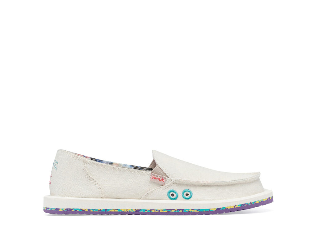 Wanna add a little MTV meets Miami Vice 1980s vibes to your favorite comfy slip-ons? Donna Rad Resort’s got it all. Radical dayglo stitching and details. Kitschy palm trees. Fresh, hot pink outsoles. Plus natural linen uppers to bring this whole fly style together. It’s awesome to the max!