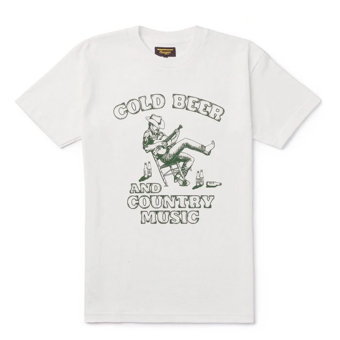 The 'Country Music Tee' is a 90% cotton, 10% polyester medium weight tee with a single chest water-based ink print.