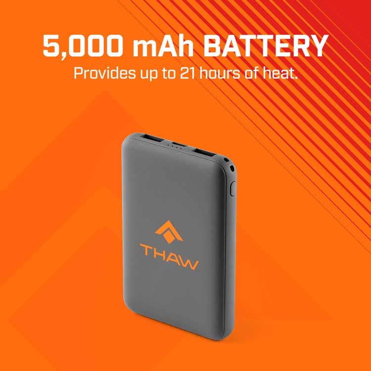 The THAW Rechargeable Heated Scarf was purposefully designed to deliver rapid warmth and superior comfort in cold conditions more effectively than the average scarf or collar on a coat. Much like the cooling effect of an ice pack on the neck during hot weather, our scarf optimally targets this same area with heat in cold weather conditions for a soothing warming effect. The reason this works is because the brainstem resides in this part of the neck, and it is responsible for helping you to sense and regulate your body temperature. Powered with an included 5000mAh power bank, the scarf has 3 heat modes reaching up to 131°F (55°C) and a max run time of 21 hours, so you’ll be able to dial in your comfort level and adapt to changing environments without having to take a break from the cold. The fleece liner is comfortable against your skin while the down insulates and the exterior nylon shell provides wind and water-resistance. The interlocking design keeps the scarf perfectly in place, and easily adjusts to accommodate all sizes. Experience the ultimate cold-weather companion that not only shields you from the icy wind but also taps into your body's natural warmth mechanisms for maximum coziness.
