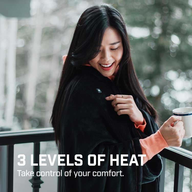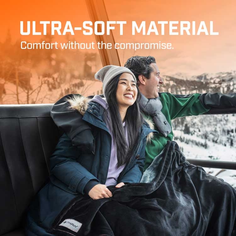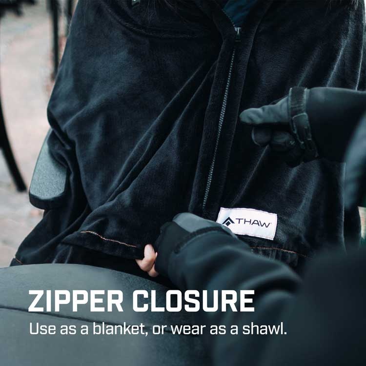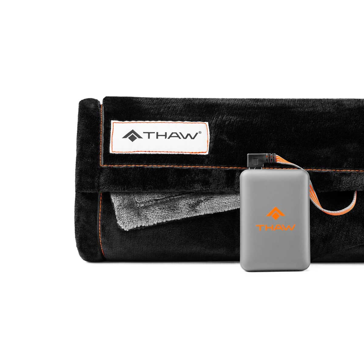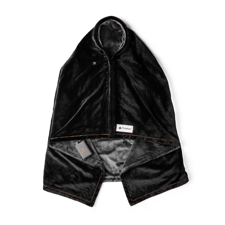 Say goodbye to chilly sporting events and drafty airplane cabins. The THAW Heated Wrap takes your beloved electric blanket, untethers it from a wall outlet and elevates it to a whole new level of versatility. The warmth and softness you love can now travel with you thanks to an innovative design and a rechargeable 10000mAh power bank. The wrap has 3 heat modes reaching up to 131°F (55°C) and a max run time of 8 hours, so you’ll be able to dial in your comfort level and adapt to changing environments without having to take a break from the cold or miss a big play. Wear it as a shawl or share the warmth by unzipping it and spreading it out as a blanket. Designed with 8 separate heat zones to deliver warmth across your upper and lower back as well as two lower zones that work great if you’re seated on a cold bench under those Friday night lights. The wrap is made of a luxuriously soft velvet that is stylish and warm just on its own. The wrap comes in a clear reusable stadium bag so it will always be ball-game ready. Experience the next level of portable warmth and comfort with the THAW Heated Wrap.