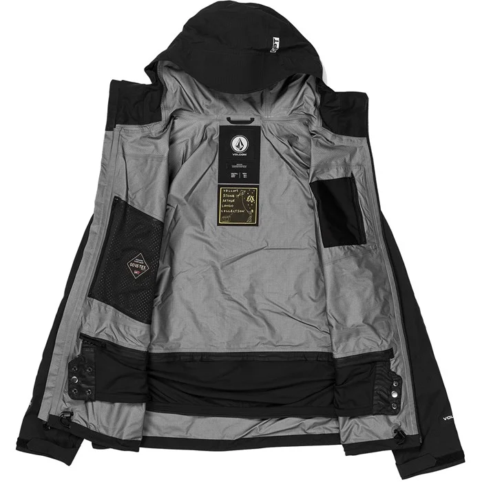 Waterproofing and breathability is the focus of the Volcom Arthur GORE-TEX Pro Shell Jacket. Gore-Tex Pro is stretchier and more breathable than the original GORE-TEX you know and love. A removable powder skirt lets you lighten the load on extreme backcountry missions and mesh-lined zippers give your body some air when you're working up a sweat. Extra touches like the jacket-to-pants connector and whistle zipper have your back no matter what the mountain dishes out.