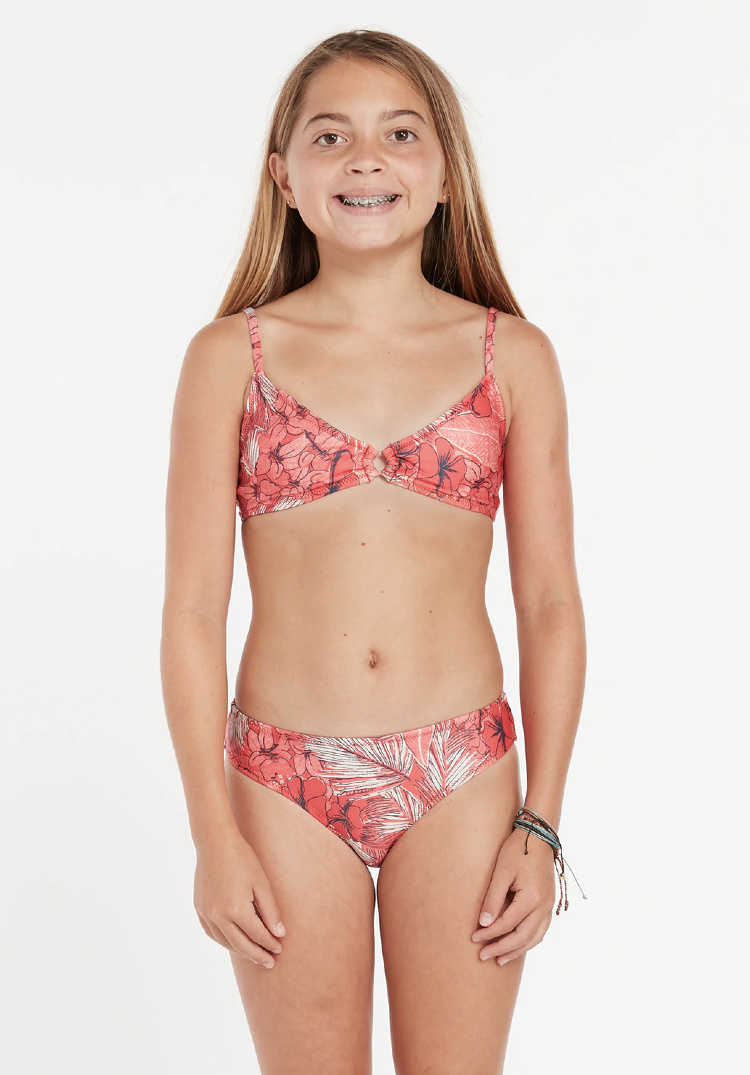 Part of Volcom's Eco-True collection, the Volcom Girls Sea U Soon Bikini Set is made with water saving Digital Sublimation printing and REPREVE recycled fibers, turning discarded plastic bottles into truly more sustainable swimwear.