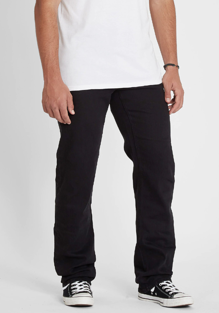 What are you waiting for? The Volcom Solver Modern Fit Jeans are ready for your everyday lifestyle. Designed with a modern straight fit and a regular rise, their blackout wash uses a reformulated water-saving enzyme wash, saving approx. 17.8 liters of water per pair. Other features include 16" leg opening, 5 pocket design, a Volcom logo patch, bar tacks, and a zip fly. Machine wash cold with like colors, tumble dry low.