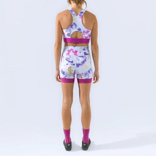 Our best selling chammy is made with a soft and compressive nylon/spandex blend, the Eleanor Chammy was designed to keep you going on long, multi-day rides but is low profile enough for a quick morning spin on your at-home bike. Pair it with our Lucille sports bra for the most swoon-worthy indoor cycling kit.
